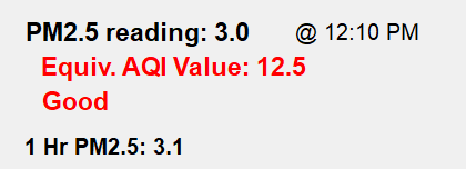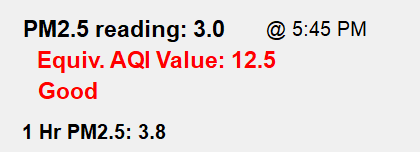 Data shown above is collected by HBurg-WX.net with an EcoWitt WH41 PM2.5 Outdoor Air Quality Sensor. This sensor detects and records PM2.5 which is an indicator of tiny particles (2.5 microns or less in size) that are in the air. Outdoor emission of particles in the PM2.5 size range is generally from combustion of gasoline, oil, diesel fuel or wood.