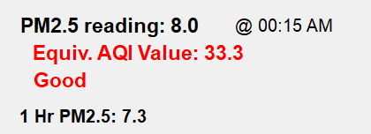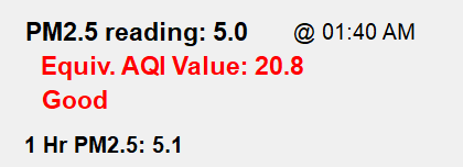 Data shown above is collected by HBurg-WX.net with an EcoWitt WH41 PM2.5 Outdoor Air Quality Sensor. This sensor detects and records PM2.5 which is an indicator of tiny particles (2.5 microns or less in size) that are in the air. Outdoor emission of particles in the PM2.5 size range is generally from combustion of gasoline, oil, diesel fuel or wood.